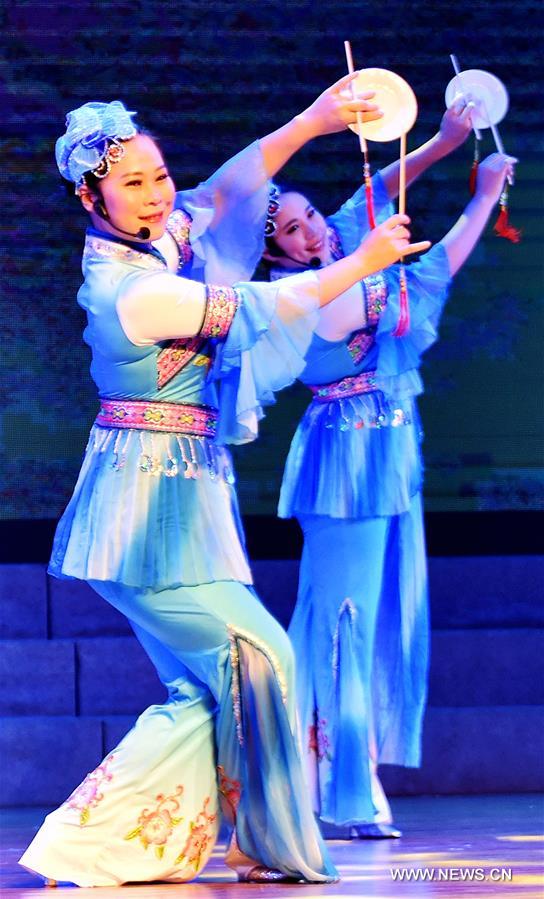 Folk artists perform during a local folk art festival in Qinzhou City, south China's Guangxi Zhuang Autonomous Region, Oct. 26, 2016. (Xinhua/Zhang Ailin)