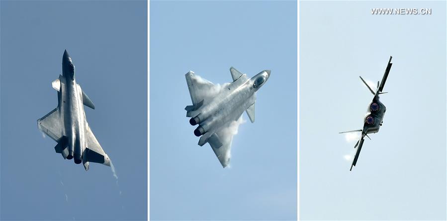 Combination photo taken on Nov. 1, 2016 shows J-20 stealth fighters performing at the 11th China International Aviation and Aerospace Exhibition in Zhuhai, south China's Guangdong Province. China's domestic-built J-20 stealth fighter made its public debut during the exhibition on Tuesday. (Xinhua/Liang Xu)