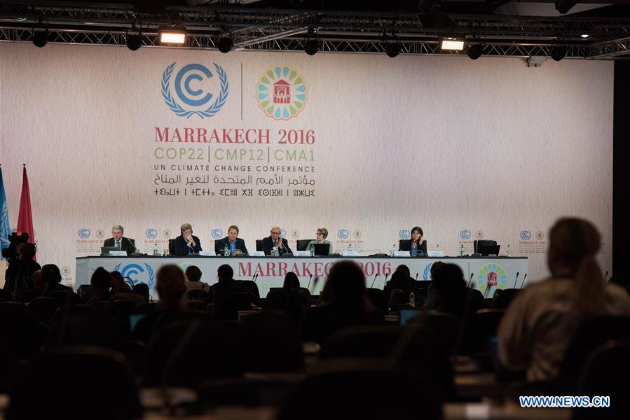 The World Meteorological Organization (WMO) reports to the United Nations climate change conference in Marrakech, Morocco, Nov. 8, 2016. The year 2015 was the warmest year on record to date, the WMO announced here on Tuesday. (Xinhua/Meng Tao)