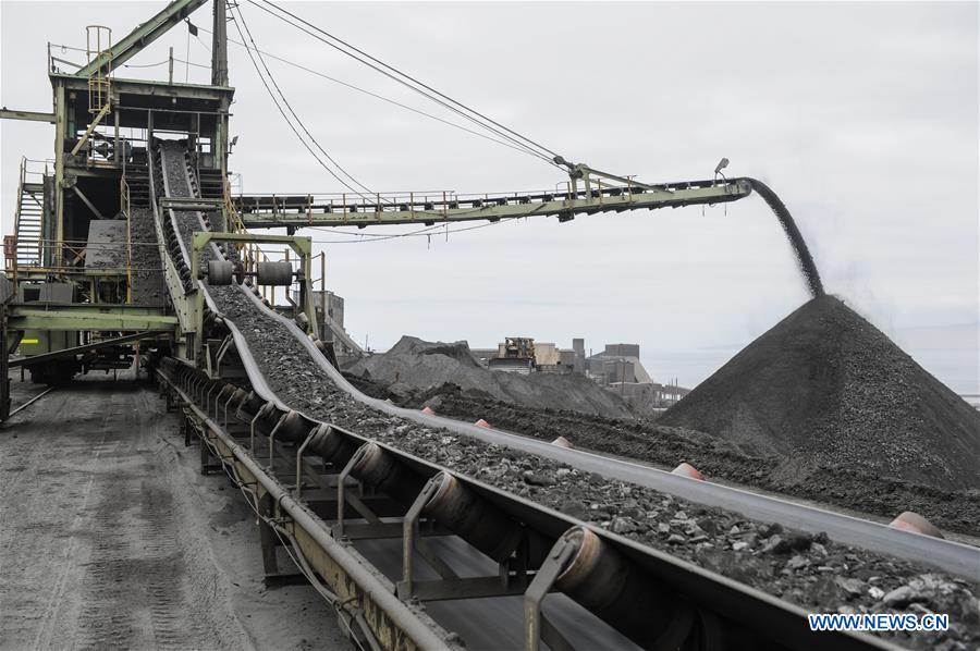 A conveyer belt transports iron ore at the mining area of Shougang Hierro PERU S.A.A. , a subsidiary of Chinese iron and steel giant Shougang Group, in Marcona, Ica province, Peru, on Nov. 9, 2016. (Xinhua/Shen Hong)
