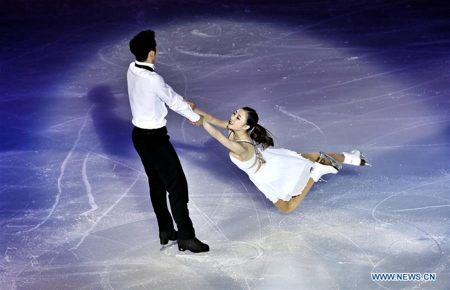 Wang Xuehan (R)/Wang Lei of China perform during an exhibiton gala at the Audi Cup of China ISU Grand Prix of Figure Skating 2016 in Beijing, capital of China, Nov. 20, 2016. (Xinhua/Bai Xuefei)