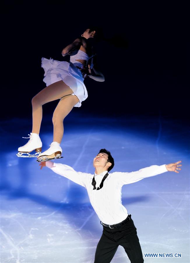 Wang Xuehan (Top)/Wang Lei of China perform during an exhibiton gala at the Audi Cup of China ISU Grand Prix of Figure Skating 2016 in Beijing, capital of China, Nov. 20, 2016. (Xinhua/Bai Xuefei)