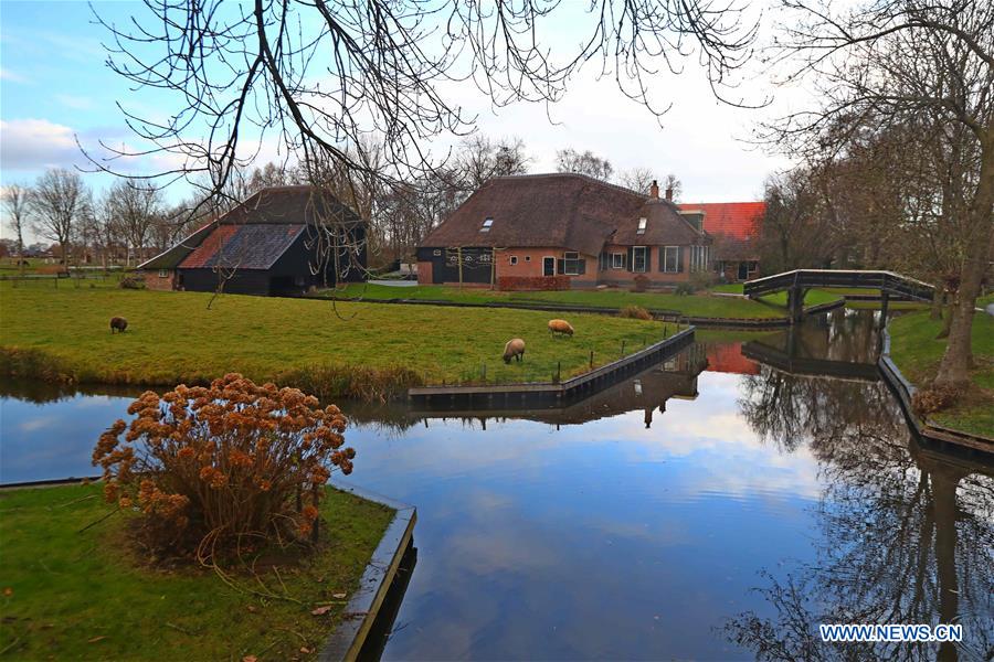 Photo taken on Dec. 2, 2016 shows the view of Giethoorn in Overijssel, the Netherlands. (Xinhua/Gong Bing)