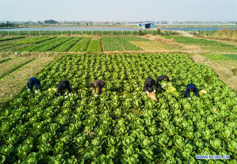 People participate in a cabbage harvest event celebrating the upcoming New Year at Changle Village under Zhili Township in Wuxing District in Huzhou, east China's Zhejiang Province, Dec. 15, 2016. A series of traditional farming and fishing events were held here to celebrate the upcoming New Year Thursday. (Xinhua/Xu Yu)