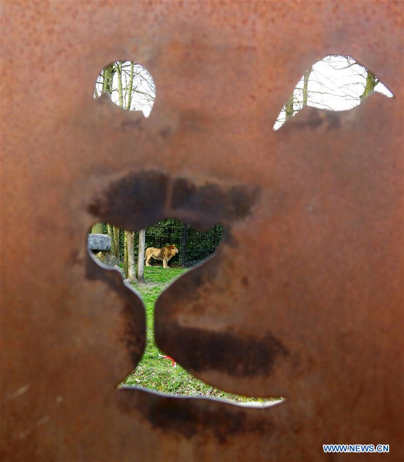 (161231) -- BEIJING, Dec. 31, 2016 (Xinhua) -- An Asiatic lion is seen at the Planckendael Zoo in Mechelen, north Belgium, April 3, 2016. (Xinhua/Gong Bing) (zw)