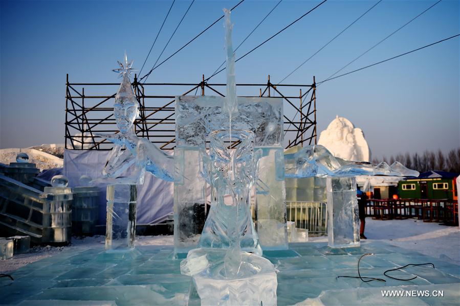 Photo taken on Jan. 4, 2017 shows the first prize winner of team Blagoveshchensk, Russia, in the 6th International Ice Assemblage Sculpture Championship in Harbin, capital of northeast China's Heilongjiang Province. A total of 15 teams from 6 countries took part in the championship which concluded on Wednesday. Team Blagoveshchensk, Russia, won the first prize. (Xinhua/Wang Jianwei)