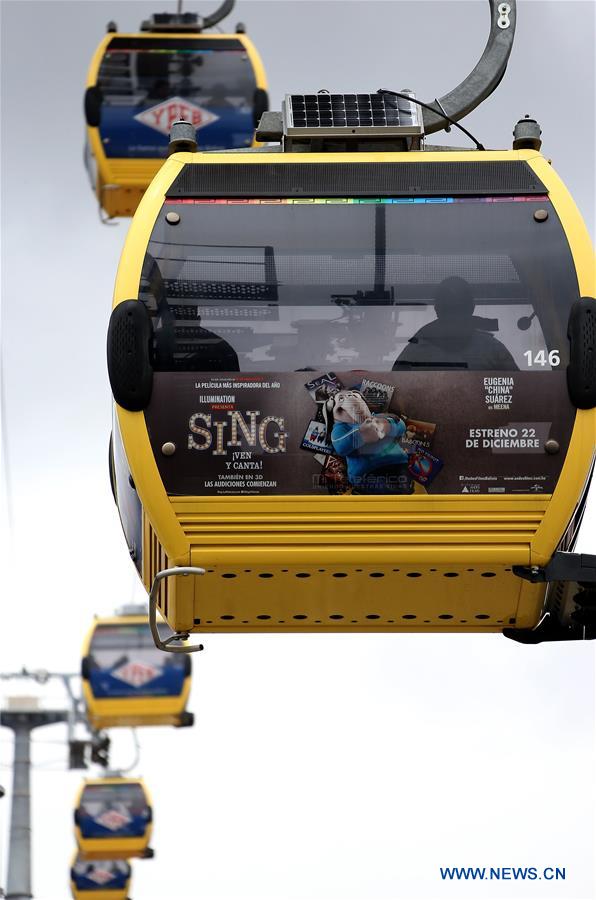 Photo taken on Jan. 8, 2017 shows the cable cars of yellow line commuting in La Paz, capital of Bolivia. The aerial cable transport system linking the cities of La Paz and El Alto emerges as an alternative to public transport, given the growing demand of people in two cities. (Xinhua/Li Ming)