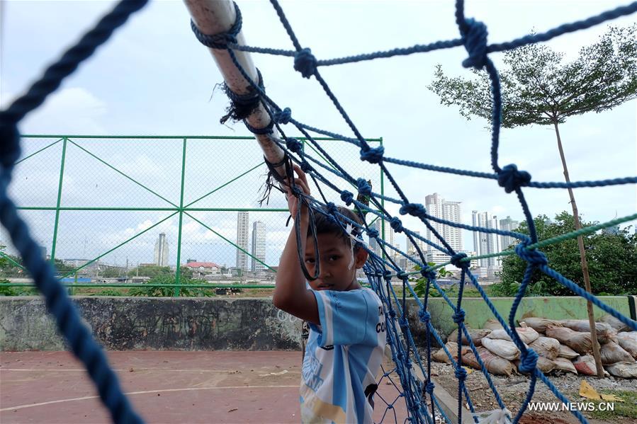 A boy plays at a playground in Petamburan, Jakarta, Indonesia, Jan. 12, 2017. (Xinhua/Agung Kuncahya B.)