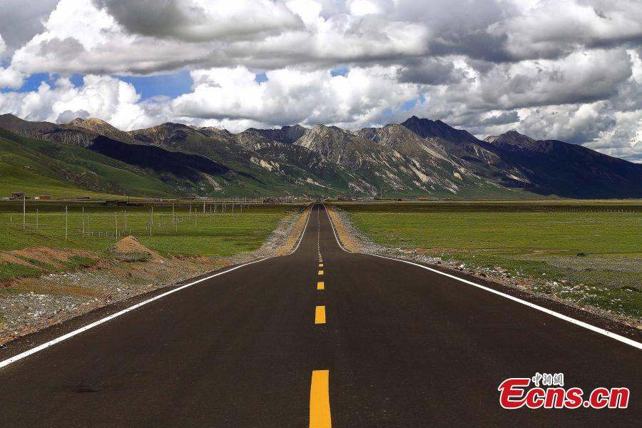 The Sichuan-Tibet Highway, part of China's National Highway 318 (G318), passes through mountains more than 5,000 meters high and offers great views of snowy mountains, grasslands, valleys and rivers along its length. (Source: ecns.cn)