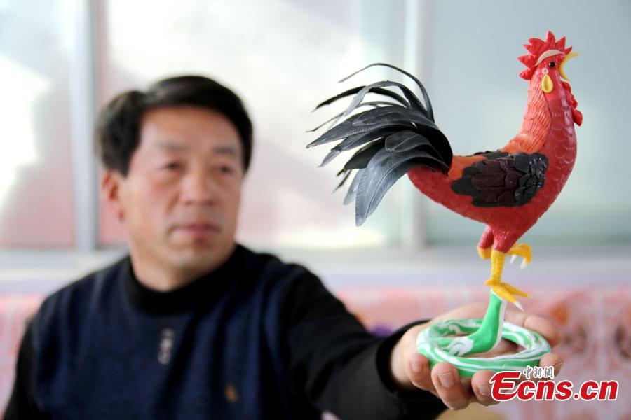 Craftsman Chen Huiping makes a dough figurine at his home in Zhangye City, Northwest China’s Gansu Province. Chen has been committed to dough figurine making for 29 years and has also tried be innovative with the craft. (Source: ecns.cn)