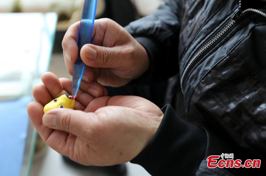 Craftsman Chen Huiping makes a dough figurine at his home in Zhangye City, Northwest China’s Gansu Province. Chen has been committed to dough figurine making for 29 years and has also tried be innovative with the craft. (Source: ecns.cn)