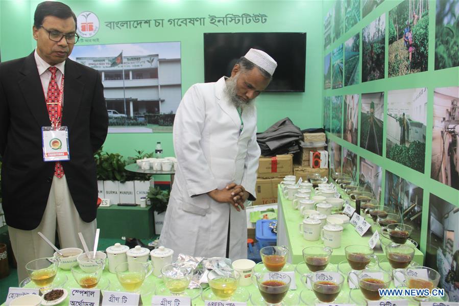 A man looks at different kinds of tea displayed on Bangladesh Tea Expo 2017 in Dhaka, capital of Bangladesh, Jan. 14, 2017. The Bangladesh Tea Expo 2017 was held here from Jan. 12 to Jan. 14. (Xinhua/Mohammad Manowar Kamal)