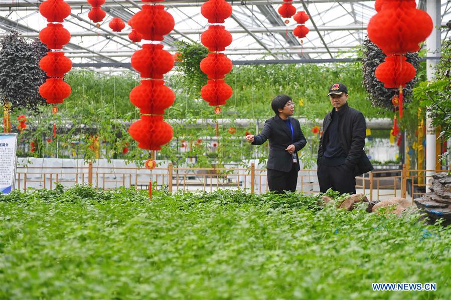 A staff member briefs a visitor at a greenhouse during the 8th Winter Agriculture Expo and Trade Fair on Spring Festival at the Agri-Expo Garden in Changchun, capital city of northeast China's Jilin Province, Jan. 18, 2017. (Xinhua/Zhang Nan)