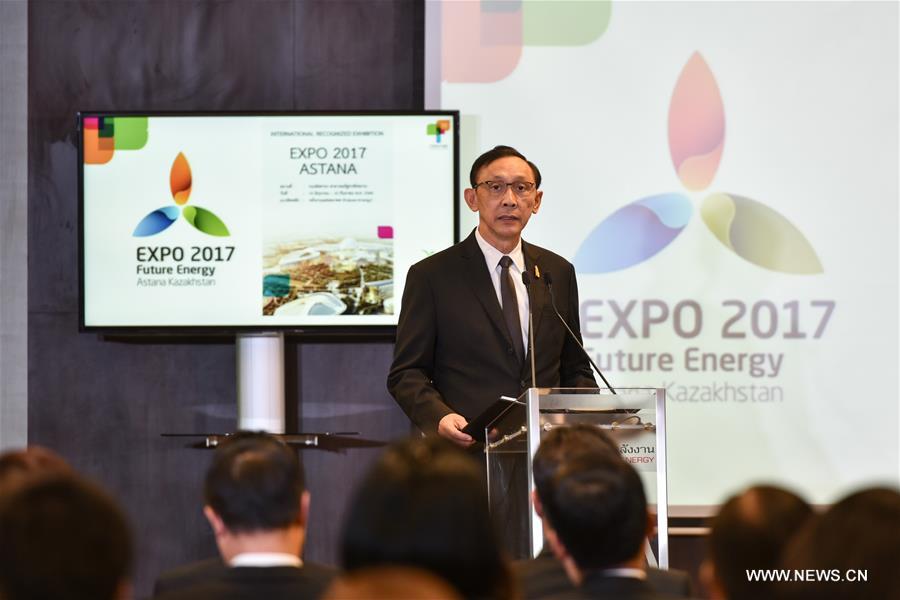 Thai Minister of Energy Anantaporn Kanjanarat speaks about the country's bioenergy potential during a press conference on the Expo 2017 Thailand Pavilion in Bangkok, Thailand, Jan. 18, 2017. Thailand will take advantage of the Expo 2017, which will be held in Astana, Kazakhstan under the theme "Future Energy" from June to September, to promote the country's bioenergy potential, said Anantaporn Kanjanarat, the Thai Minister of Energy, during a press conference on Wednesday. (Xinhua/Li Mangmang)