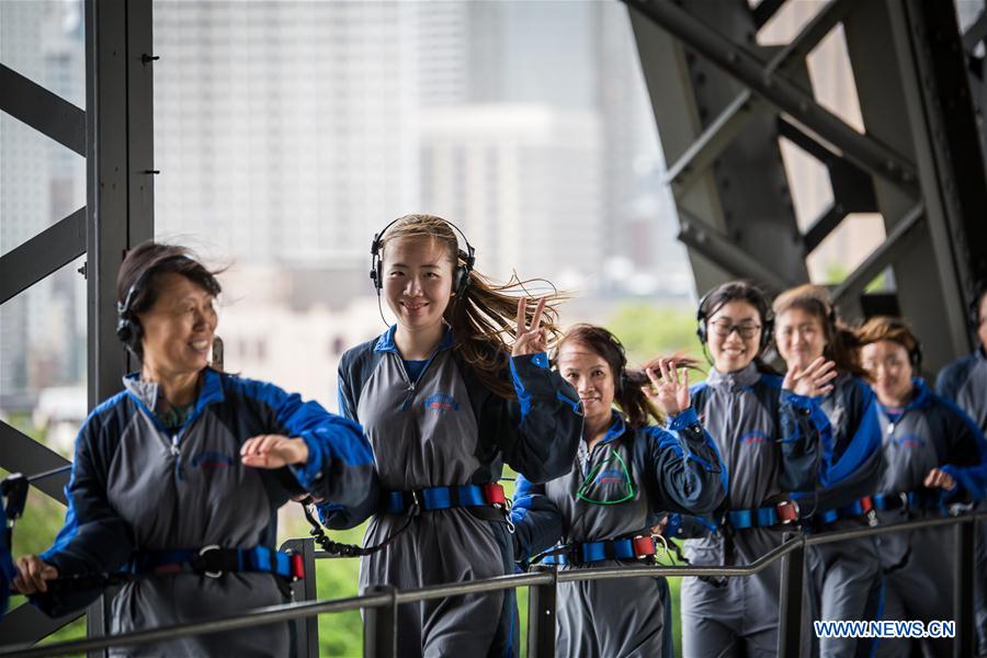 Chinese tourists arrive at the Sydney Harbour Bridge in Sydney, Australia, Jan. 18, 2017. Bridge Climb will officially hold its unique Chinese New Year celebration at the top of the Sydney Harbour Bridge from Jan. 21. (Xinhua/BridgeClimb)