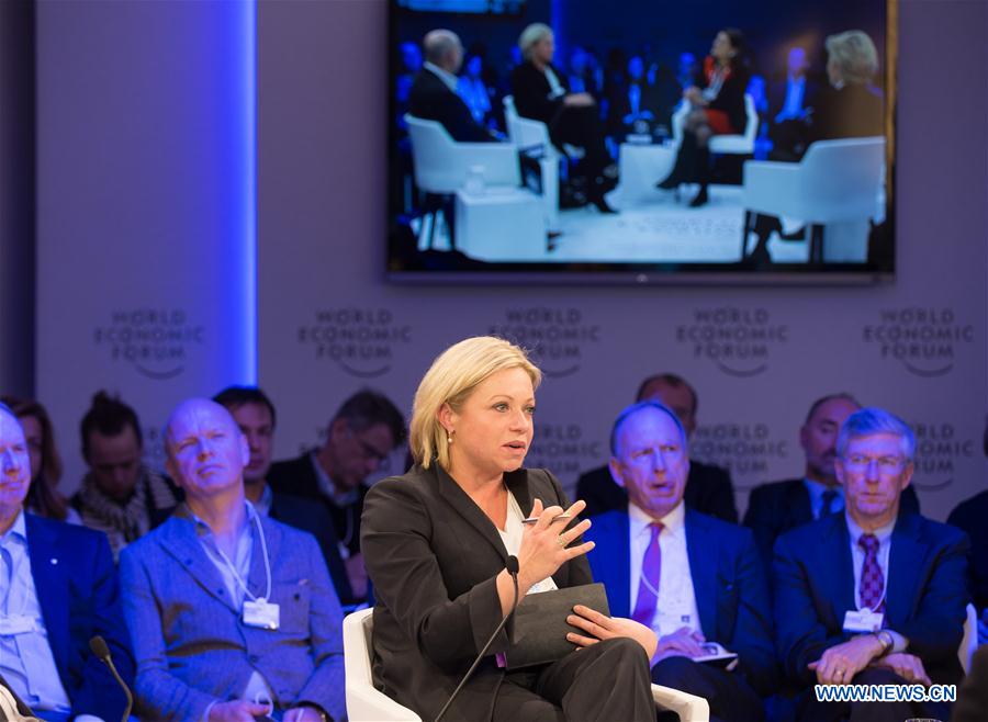 Dutch Defense Minister Jeanine Hennis-Plasschaert speaks during the WEF's annual meeting in Davos, Switzerland, Jan. 18, 2017. The 47th WEF's annual meeting kicked off in Davos on Jan. 17 and will last to Jan. 20. (Xinhua/Xu Jinquan)
