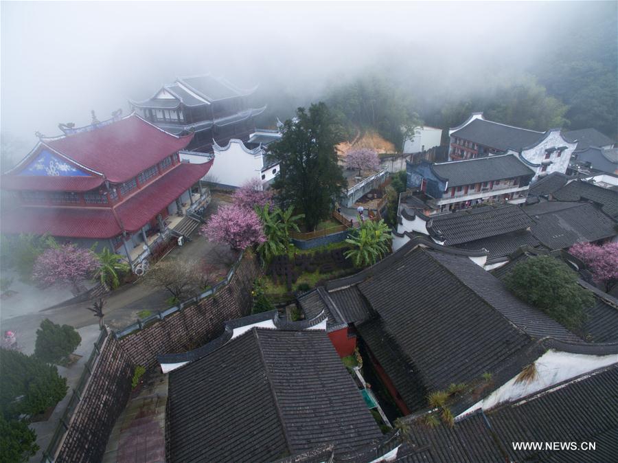 Plum blossoms are seen at the Linyang temple in Fuzhou, capital of southeast China's Fujian Province, Jan. 20, 2017. (Xinhua/Song Weiwei)