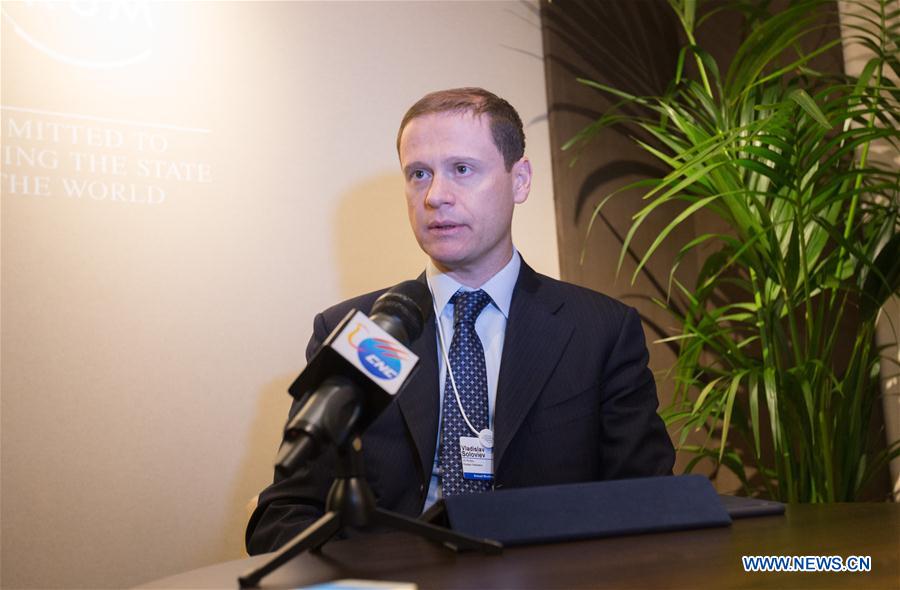 Vladislav Soloviev, chief executive officer of Russian aluminum producer RUSAL, speaks during an interview with Xinhua in Davos, Switzerland, Jan. 18, 2017. China's current supply-side reform supports global commodity prices, said Vladislav Soloviev. (Xinhua/Xu Jinquan)