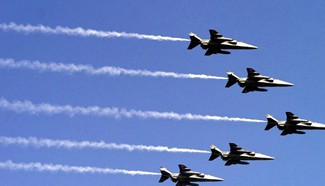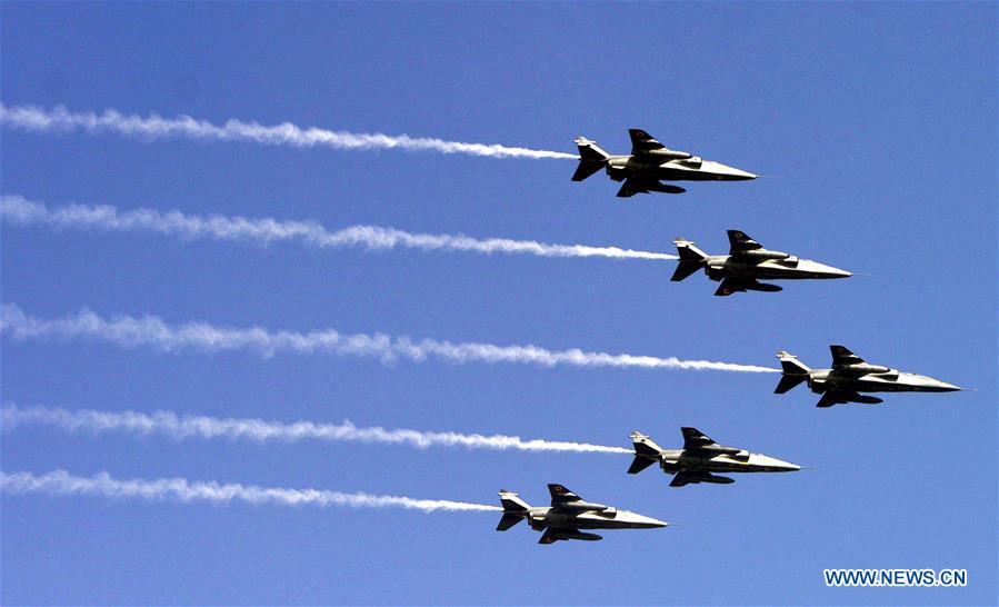 Indian Air Force fighter jets fly over the sky during the rehearsal for the Republic Day parade in New Delhi, India, Jan. 23, 2017. India is to celebrate its 68th Republic Day on Jan. 26 with large military parade. (Xinhua/Stringer)