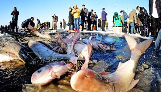Tourists take part in a winter fishing event in Kangping County of Shenyang City, capital of northeast China's Liaoning Province, Jan. 5, 2017. Liaoning, a province with severe winter weather, has devoted great efforts to promote winter tourism, a bright spot in the local economy. (Xinhua/Yang Qing)
