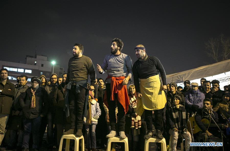 Iranian actors perform during the 35th Fajdr International Theater Festival in downtown Tehran, Iran, Jan. 24, 2017. (Xinhua/Ahmad Halabisaz)