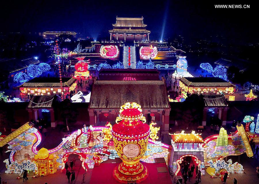 Photo taken on Jan. 31, 2017 shows the giant lanterns at a lantern fair at Longting park in Kaifeng, central China's Henan Province, . (Xinhua/Li An)