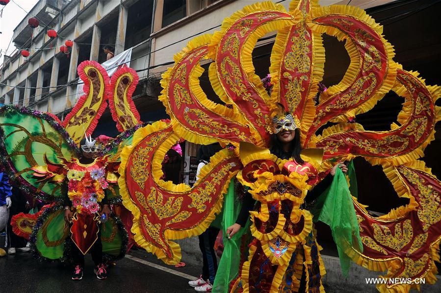 People participate in a cultural parade during the Chinese Lunar New Year celebration at Meranti Island in Riau, Indonesia, Feb. 2, 2017. (Xinhua/Adi)