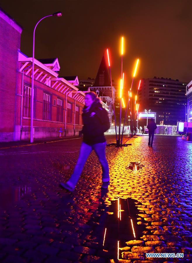 Photo taken on Feb. 4, 2017 shows artistic light installations on the Bright Brussels Festival held during Feb. 2-5 in Brussels, capital of Belgium. (Xinhua/Gong Bing)