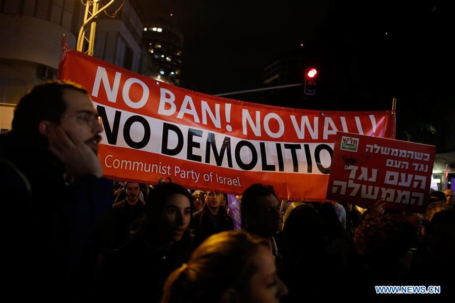 Protesters take part in a demonstration against house demolitions in the Bedouin community in Tel Aviv, Israel, Feb. 4, 2017.(Xinhua/JINI)