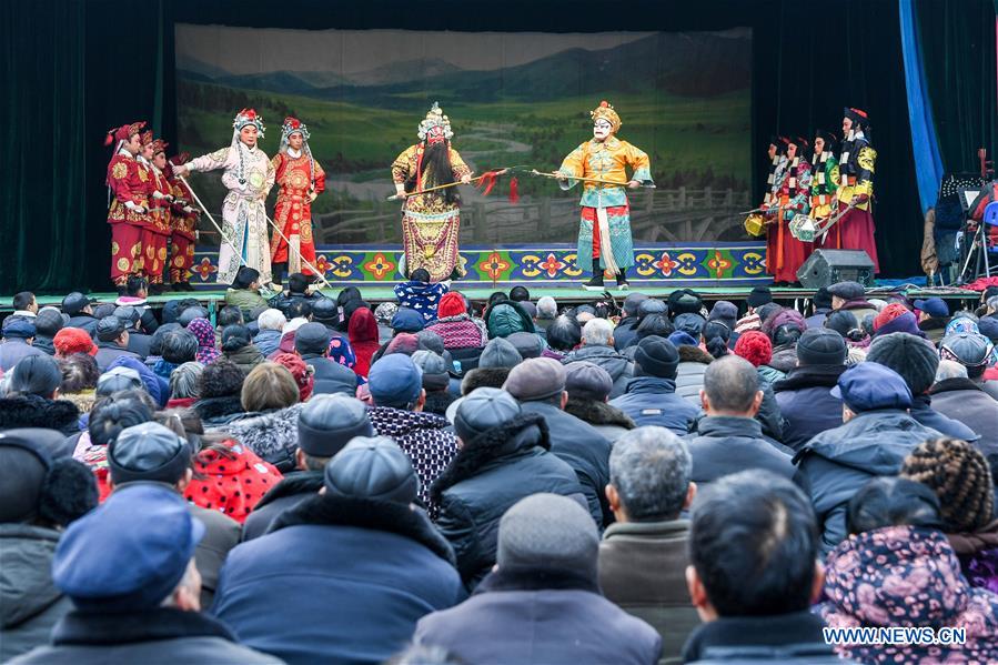 Actors perform Henan Opera in Qianyuan Village of Yuanhui District in Luohe, central China's Henan Province, Feb. 6, 2017. (Xinhua/Li Bo)
