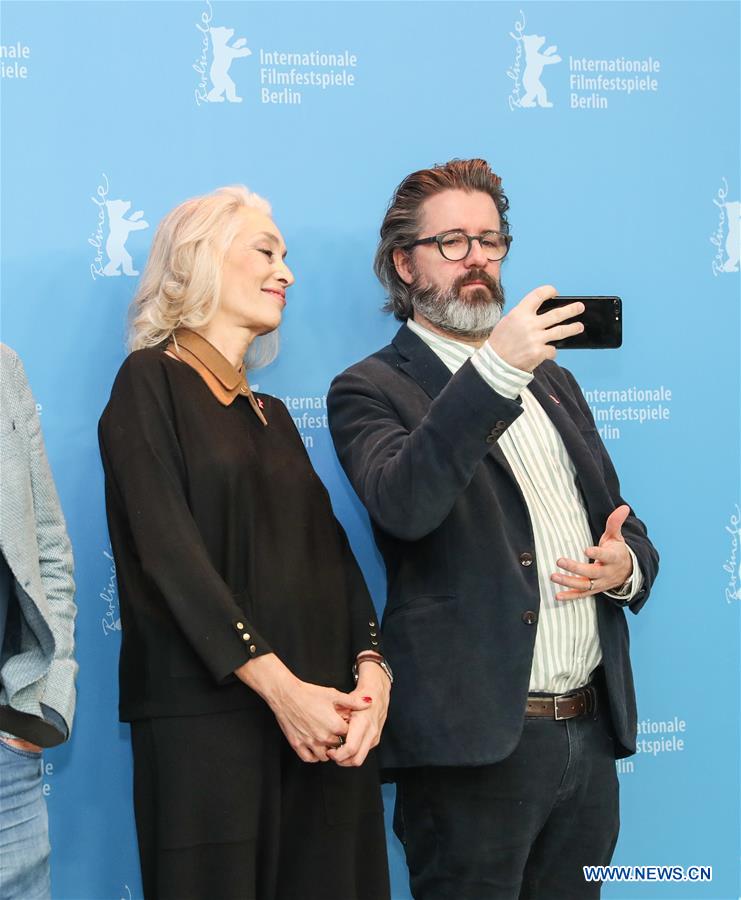 Member of the jury for the 67th Berlinale International Film Festival, Danish-Icelandic artist Olafur Eliasson (R) takes photos with a cellphone during a photocall in Berlin, capital of Germany, on Feb. 9, 2017. (Xinhua/Shan Yuqi)