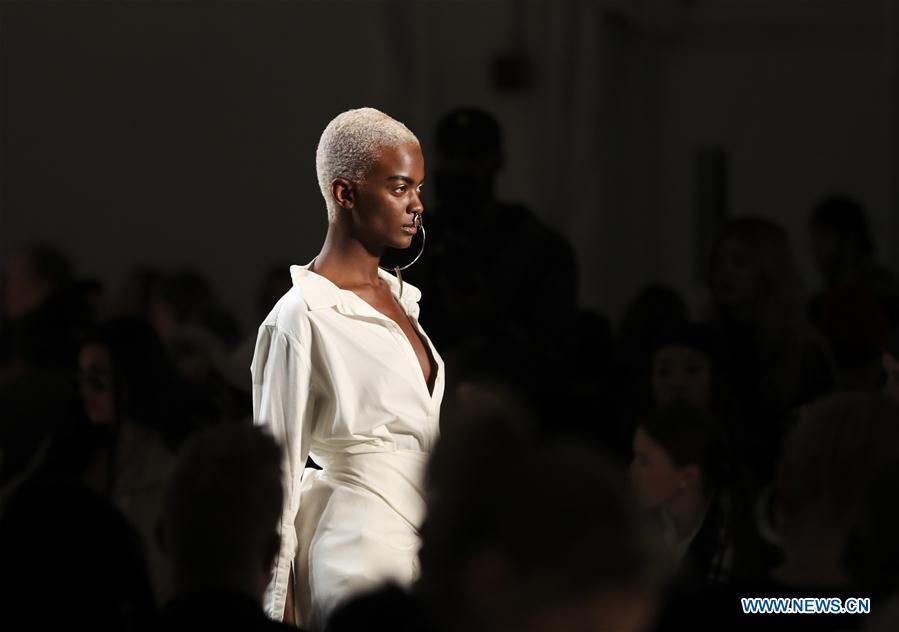 A model presents a creation of Nicholas K during the debut show of New York Fashion Week (NYFW) in New York, the United States, on Feb. 9, 2017. The New York Fashion Week (NYFW) kicked off here on Thursday. (Xinhua/Wang Ying)