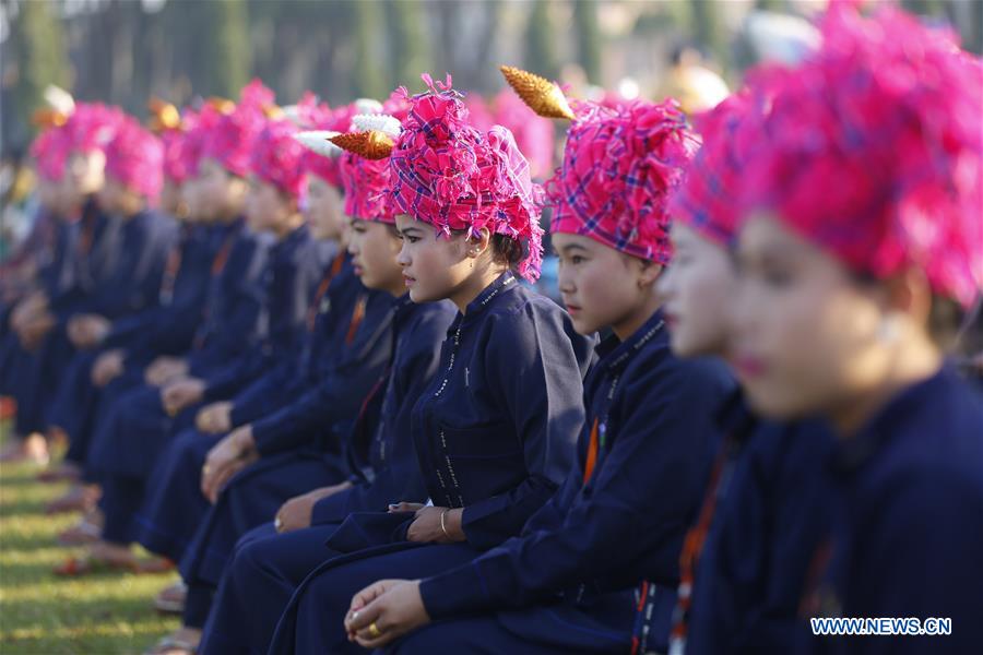 Pa-Oh girls attend a ceremony to celebrate Myanmar's 70th Union Day in Panglong, southern Shan State, Myanmar, Feb. 12, 2017. (Xinhua/U Aung)