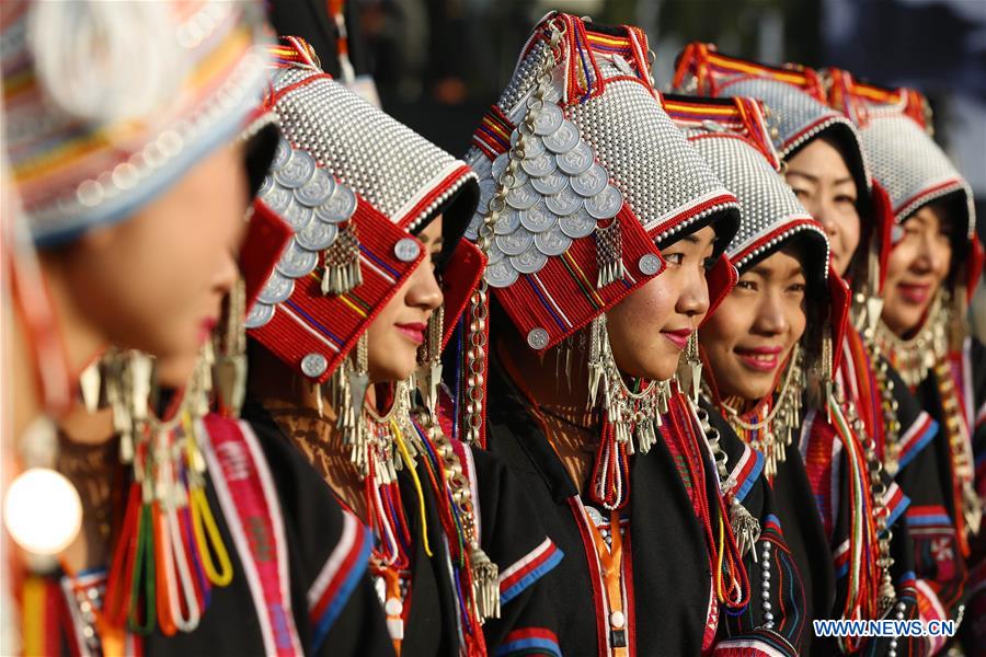 Shan ethnic girls attend a ceremony to celebrate Myanmar's 70th Union Day in Panglong, southern Shan State, Myanmar, Feb. 12, 2017. (Xinhua/U Aung)
