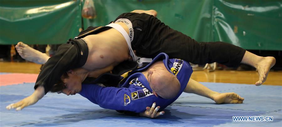 Brazilian Jiu Jitsu (BJJ) competitors fight during the "BJJ East European Open Championship Sarajevo 2017", in Sarajevo, Bosnia and Herzegovina, on Feb. 11, 2017. This tournament is the first of its kind held in Sarajevo. (Xinhua/Haris Memija)