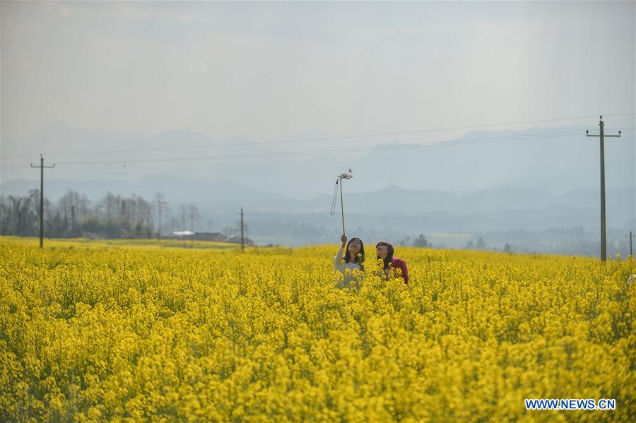 Tourists take selfies in flowers in Jietou Town of Tengchong, southwest China's Yunnan Province, Feb. 14, 2017. The 4th Gaoligong flower festival kicked off here on Tuesday. (Xinhua/Li Yan)