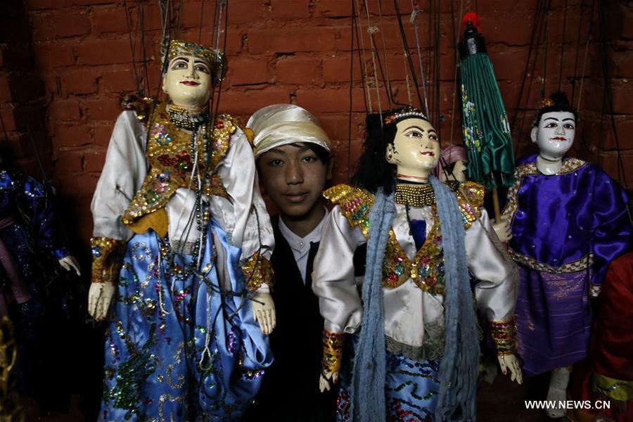 An artist shows puppets at the backstage of a restaurant in Bagan, Myanmar, Feb. 14, 2017. Popular in Myanmar, puppet show is usually staged during Pagoda festivals. (Xinhua/U Aung)