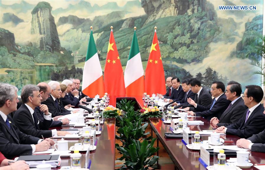 Chinese Premier Li Keqiang meets with Italian President Sergio Mattarella in Beijing, capital of China, Feb. 23, 2017. (Xinhua/Xie Huanchi)