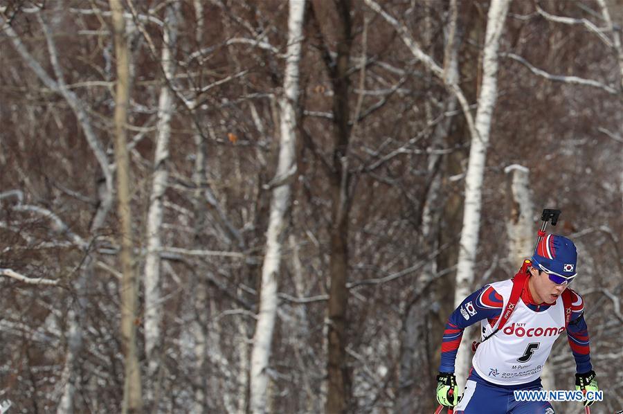 Kim Yongyu of South Korea competes during the men's 12.5km sprint of Biathlon at the 2017 Sapporo Asian Winter Games in Sapporo, Japan, Feb. 24, 2017. (Xinhua/Liao Yujie)