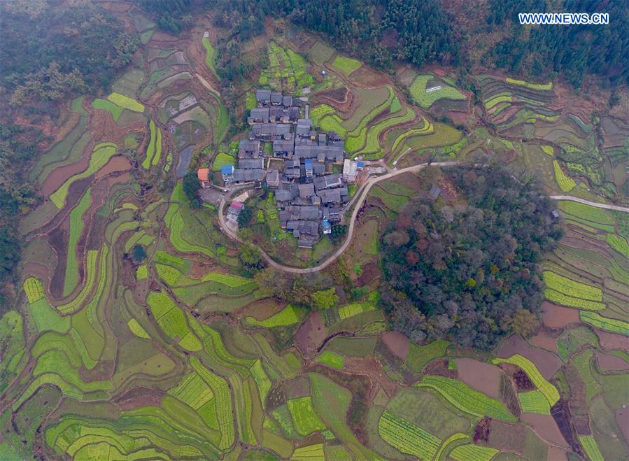 Photo taken on Feb. 25, 2017 shows scenery of rapeseed flowers in the fields at Changfeng Village of Rong'an County, south China's Guangxi Zhuang Autonomous Region.(Xinhua/Huang Xiaobang)
