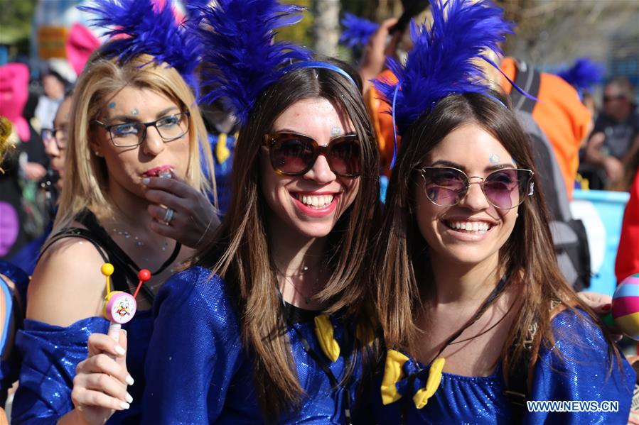 People participate in the grand parade during the Cyprus Limassol's carnival in Limassol, Cyprus on Feb. 26, 2017. (Xinhua/Christos Theodorides)