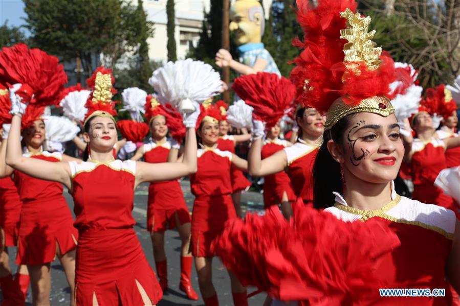 People participate in the grand parade during the Cyprus Limassol's carnival in Limassol, Cyprus on Feb. 26, 2017. (Xinhua/Christos Theodorides)