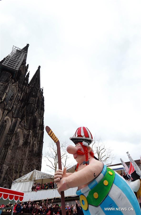 Carnival revellers celebrate during the Rose Monday carnival parade in Cologne, Germany, on Feb. 27, 2017. (Xinhua/Luo Huanhuan)