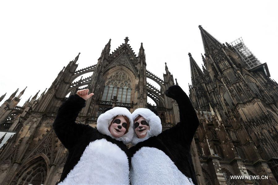 Carnival revellers celebrate during the Rose Monday carnival parade in Cologne, Germany, on Feb. 27, 2017. (Xinhua/Luo Huanhuan)