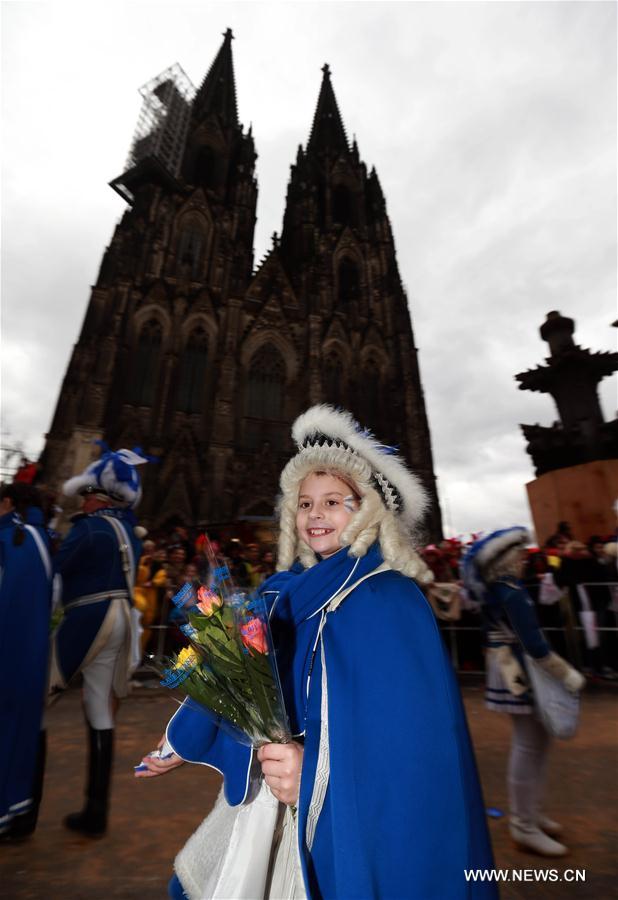 Carnival revellers celebrate during the Rose Monday carnival parade in Cologne, Germany, on Feb. 27, 2017. (Xinhua/Luo Huanhuan)