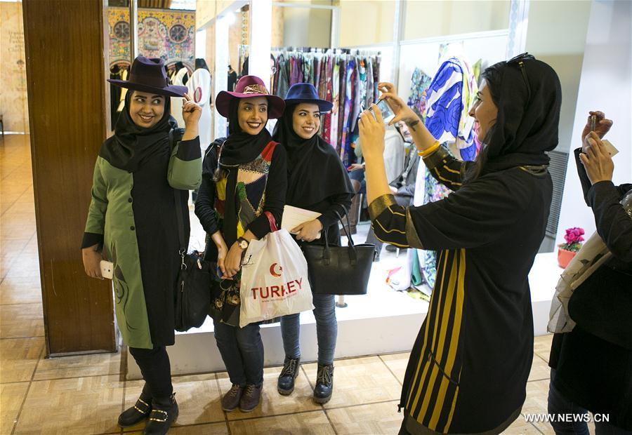 Women pose for photos during the 6th Fadjr international Fashion and Clothing Festival in Tehran, capital of Iran, on Feb. 27, 2017. (Xinhua/Ahmad Halabisaz)