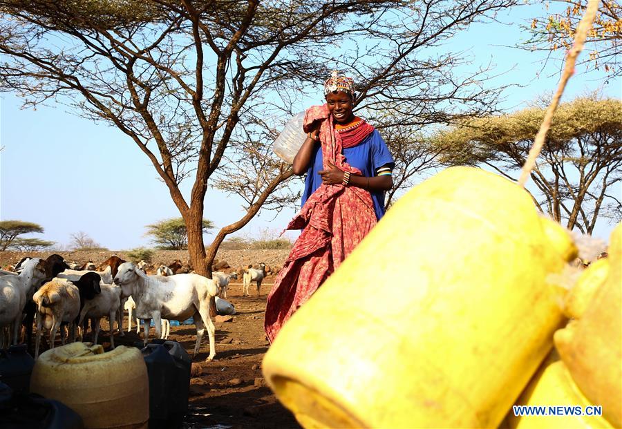 A Samburu woman waits to collect water in Marsabit, one of the most severe drought-hit regions in Kenya, on March 5, 2017. The UN relief chief on Saturday urged international support for the estimated 2.7 million people in parts of Kenya who urgently need food and water following the onset of a severe drought. (Xinhua/Pan Siwei)
