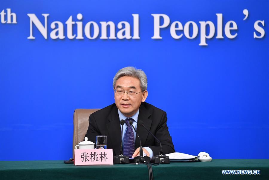 Chinese Vice Minister of Agriculture Zhang Taolin takes questions on promoting agricultural structure reform on supply-side at a press conference for the fifth session of the 12th National People's Congress in Beijing, capital of China, March 7, 2017. (Xinhua/Li Xin)