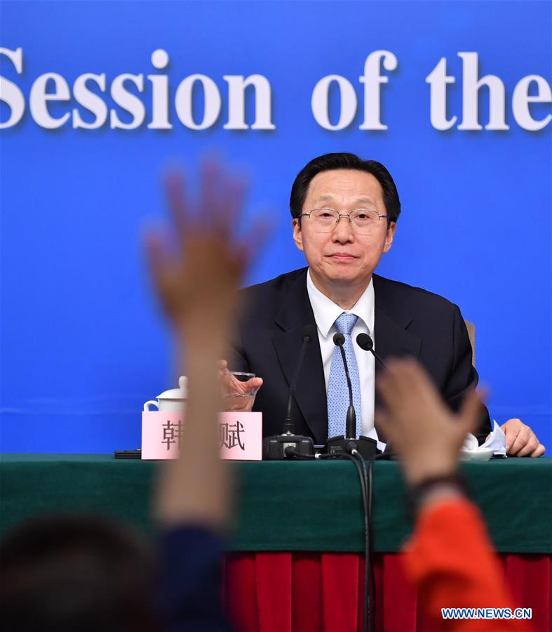Chinese Minister of Agriculture Han Changfu takes questions on promoting agricultural structure reform on supply-side at a press conference for the fifth session of the 12th National People's Congress in Beijing, capital of China, March 7, 2017. (Xinhua/Li Xin)