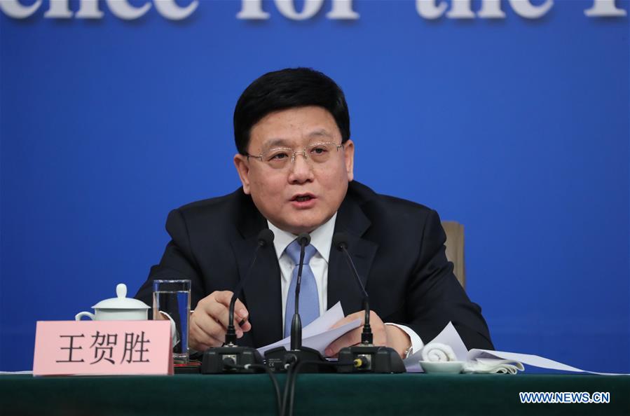 Wang Hesheng, deputy head of the National Health and Family Planning Commission (NHFPC), answers questions on health and family planning reforms at a press conference for the fifth session of the 12th National People's Congress in Beijing, capital of China, March 11, 2017. (Xinhua/Zhang Yuwei)